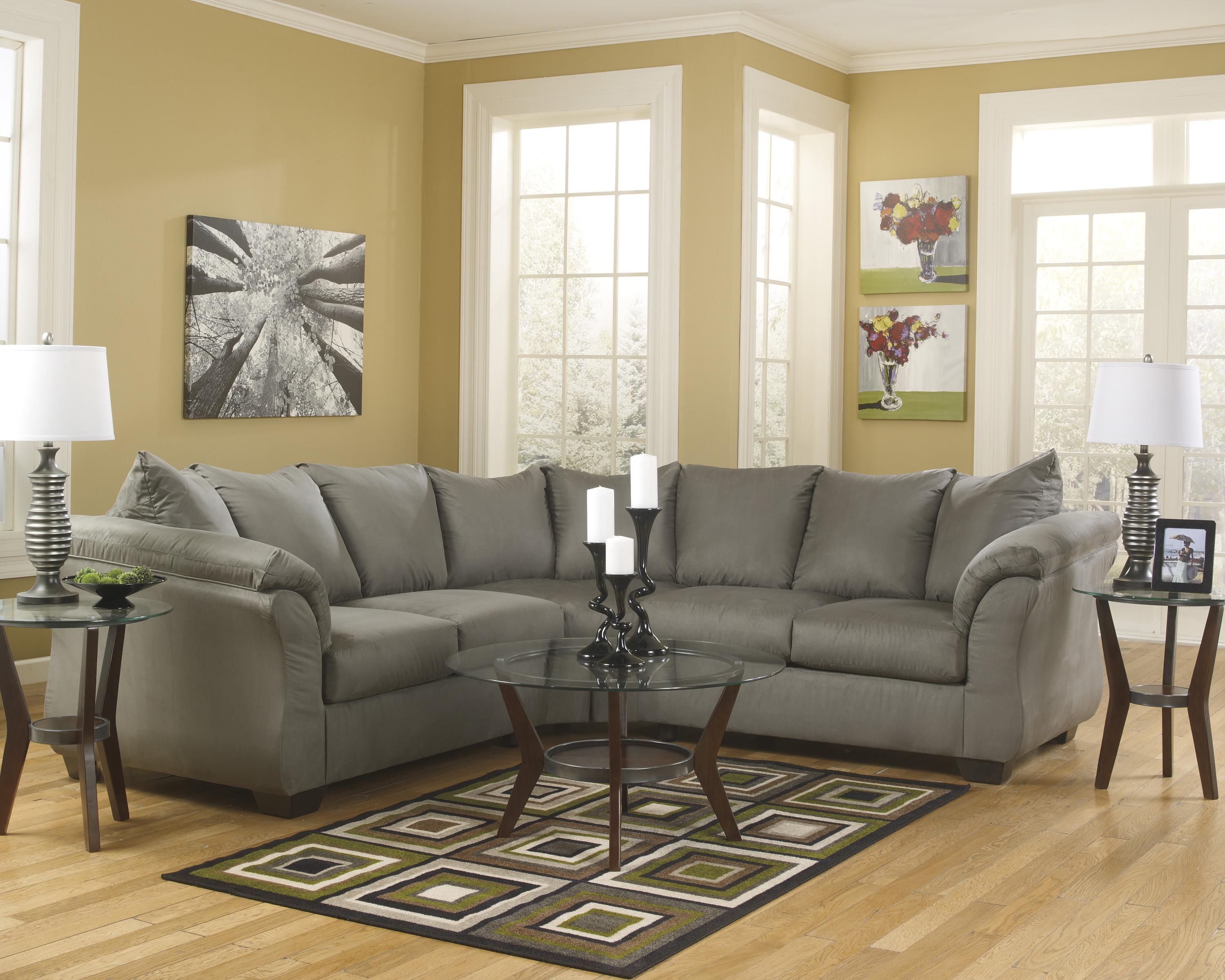 Signature Design By Ashley Darcy Cobblestone Contemporary Sectional Sofa With Sweeping Pillow Arms Becker Furniture World Sectional Sofas